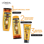 L'Oreal Paris 6 Oil Nourish Shampoo has been created to provide complete nourishment to your hair from root to tip with six micro oils™ making it soft, shiny, thick, strong, smooth and manageable. Pamper your hair with the 6-Oil Nourish Shampoo personalised for your hair type. Science meets tradition with the infusion of 6 unique oils - Argan, Almond, Jojoba, Olive, Coconut, and Camelina. It penetrates deep into the scalp giving it utmost nourishment and care that is suitable for all hair types. L'Oreal Paris helps to revive all forms of hair damage. Whether it’s from heat styling, colour processing or dryness, L'Oreal Paris has powerful treatments formulated with superior technology. It eliminates dryness in just 1 wash and deeply nourishes the hair without weight.