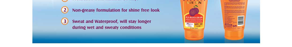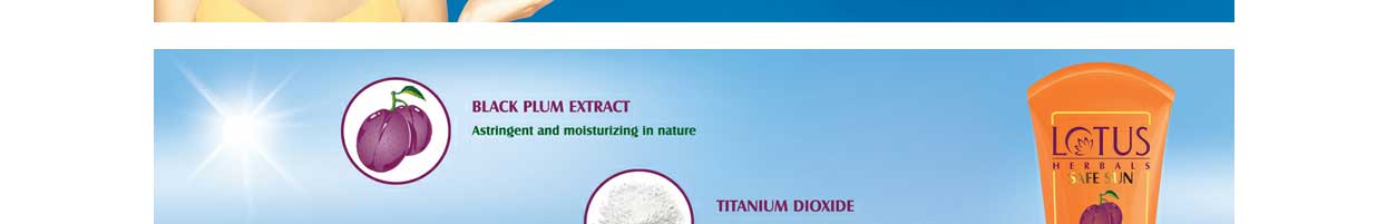 It consists of black plum extract which is astringent and moisturising in nature and titanium oxide present in the cream helps in blocking the solar radiations physically. It has a property of not wiped off by sweat or water. Protect your skin with harmful solar radiations by Lotus Herbals Safe Sun Sun Block Cream SPF 30 PA++.