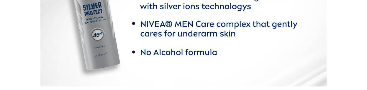 Nivea for Men Roll-on Deodorant Silver keep with anti-bacterial silver ions helping to remove bacteria and avoid body odor. Delivers 24 hour assurance and anti-per spirant guard keeping you fresh and dry all day long.