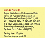 Sugar, Maltodextrin, Hydrogenated Palm kernel oil, Hydrogenated coconut oil, Emulsifiers and Stabilisers (INS 472, INS 471, INS 433, INS 412, INS 407, INS 415, INS 460), Caseinates, lodised Salt, Artificial Flavouring substance (Butterscotch), Synthetic Food Colour -INS (102).