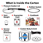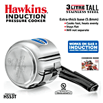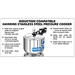 The body and lid of this Stainless-Steel Pressure Cooker with Induction Compatible Base are 100% stainless steel. To ensure uniform heating, the bottom has a core of 4.06 mm thick aluminium sandwiched between two sheets of stainless steel. The base always stays flat, never bulges. Stainless steel stays bright, does not pit or corrode, is easy to clean and extremely hygienic. Can be used safely for light and deep frying and pressure-cooking. Suitable for gas, electric, ceramic, halogen, and induction cooktops. Suitable for gas, electric, ceramic, halogen, and induction cooktops. Ideal to cook for 3 or 4 persons.