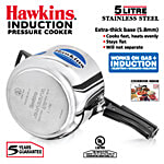 The body and lid of this Stainless-Steel Pressure Cooker with Induction Compatible Base are 100% stainless steel. To ensure uniform heating, the bottom has a core of 4.06 mm thick aluminium sandwiched between two sheets of stainless steel. The base always stays flat, never bulges. Stainless steel stays bright, does not pit or corrode, is easy to clean and extremely hygienic. It can be used safely for light and deep frying and pressure cooking. Suitable for gas, electric, ceramic, halogen, and induction cooktops. Ideal to cook for 5 to 7 persons.