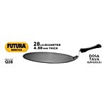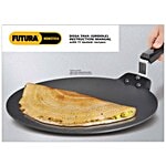 Futura Non-stick Dosa Tawa is designed with just the right curvature and thickness to give you the best cooking results when making dosa (rice and gram pancakes). The flange, which attaches the handle with strong stainless-steel rivets, is uniquely designed to not interfere with the cooking surface and to hence maximise the cooking area, allowing you to make a large dosa, or several uttapam or cutlets at one time. The 4.88 mm extra thick heavy gauge metal ensures fast and even heat conduction and retains heat well.