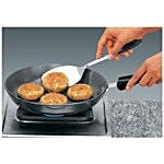 Futura Hard Anodised Frying Pan comes with extra thickness that helps you cook without burning with minimal heat control. The instruction manual which comes with each frying pan gives easy tips for use and care as well as tested recipes. The handles, whether plastic or stainless steel, are stay-cool and comfortable. The frying pan with rounded sides has extra height to prevent the spilling of food while stirring. The Tadka Pan (Spice Heating Pan) is designed for the quick heating of flavourful spices and is also useful for melting butter or reheating small quantities of food.