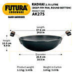 Hawkins Futura Hard Anodised Deep-Fry Pan is made with hard anodised. Deep-Fry Pan is like a kadhai or saucepan, that has a round bottom. This fry pan ensures even and consistent heating. It is an ideal cookware for any kitchen. It is easy to clean, wash and is long-lasting. This cookware is used for preparing and cooking food or stylishly serving food. It has a heavy-duty heat-resistant long handle so that it stays cool while cooking. It is ideal for samosas, vegetables, for making sweets and many more deep-frying foods. It is compatible with a gas stove.