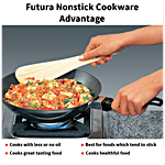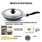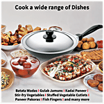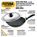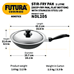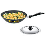 Hawkins Futura Non-stick Stir-Fry Wok is made with hard anodised material that has a non-stick coating over it. This wok is like a deep fry pan, that has a flat bottom for easy stability. This wok ensures even and consistent heating. It is an ideal cookware for any kitchen. It is easy to clean, wash and is long-lasting. This cookware is used for preparing and cooking food or stylishly serving food. This wok has a stainless steel lid for efficient cooking. It has heavy-duty heat-resistant handles so that it stays cool while cooking. It is ideal for vegetables, noodles, chicken, meat, seafood and many other dishes.