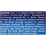 AshwaganDHA, Satavari, Shankapushpi, Jyotismath, Brahmi, Kali Musali, Bringaraj, Sugar, Malt Extract, Chocolate Powder, Milk Solids, Cellulose Cocoa, Wheat Caramel, Vanilla Powder