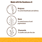 Soultree Nutgrass Face Wash With Neem & Soothing Chamomile boosts radiance, removes excess oil, promotes healing of breakouts, calms the skin and helps in prevention of blackheads. This gentle everyday soap-free face cleanser, prepared with organic Nutgrass, Neem and Chamomile, will help in deep cleansing of the skin. Ideal for people who may suffer from regular breakouts, this face cleanser will remove excess oils that result in blackheads, dullness and hyperpigmentation. Mandarin Oil and fair-trade Chamomile handpicked from the forests of Ranikhet in Uttarakhand will sooth and calm your skin while giving it a boost of radiance on a daily basis.