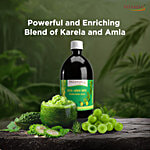Patanjali Karela Amla Juice contains no. of important nutrients ranging from iron, magnesium and vitamin to potassium and vitamin C. An excellent source of dietary fibre, it also contains twice the calcium of spinach, beta-carotene of broccoli, and the potassium of a banana. It is used for the treatment, control, prevention and improvement of Diabetes, Blood purifier, Hyperlipidemia, Breast cancer, Inflammation, Oxidative stress, Iron deficiency, Urinary infection, Leucorrhea, Hypertension, Constipation, Jaundice and fever.
