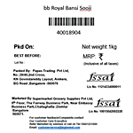 Manufactured by : Bangalore Papa's Trading No 39/40, 2nd Cross, KN Govindareddy Layout, Arkere, Bannerghatta Road, Bangalore - 560076 Fssai Lic No11214334000011 | Kolkata ASSHIRVAD ENTRPRISE 16, PTR Siding, Coal Depot Shalimar, Howrah - 711102 Fssai Lic No12815008001814 | Kolkata Sri Jagannath Roller Flour Mills F/22, Food Processing Park, IDCO Industrial Estate, Jemadai Khurda Odisha 752057 Fssai Lic No12014031000001 | Chennai PAPAS TRADING PRIVATE LIMITED NO-16 B, Self help Industies Estate, Kovilambakkam, Chennai - 17. Fssai Lic No12417008000720 | Patna M/S ASG VISION B-295, MITRA MONDAL COLONY , SAKET VIHAR , PATNA - 800002 Fssai Lic No10416000000798 | Ahmedabad Parshva Foods , SR No -655/8/2, Opp Kumar Prithvi, Behind Shreeji Lawns, Bibwewadi, Pune-37 Fssai Lic No11517035000559 | Mumbai Shree Jayraj Food A-1, Punit Industrial premises Co-op soc Ltd, Thane Belapur road, turbhe, navi Mumbai- 400705 Fssai Lic No11515016000348 | Mumbai Malwa Agro Unit-2 Praveen Survey no 213/2, Village- Shriram Talawali, Dhar road, indore ( Madhya Pradesh)-452001 Fssai Lic No11414850001601 | Pune PARSHVA FOODS , 655/8/2, Ganga Dham Road, Behind Shreeji lawns, Opp. Kumar Prithvi Bldg, Bibwewadi, Pune 411 037. Fssai Lic No11517035000559 | Delhi SHRI JAYRAJ FOODS PVT. LTD KHASRA NO-427/428, LAL DORA, LAND MARK-MOTHER'S PRIDE SCHOOL, VILLAGE ALIPUR, NEW DELHI-110036 Fssai Lic No13317005000307 | Vijayawada-Guntur SRI SIVA SAI TRADERS (VJA) , enikepadu, vijayawada-521108 Fssai Lic No10115006000041 | Vijayawada-Guntur Super market grocery supplies pvt ltd , Door No:4-88/2, part-b, Asst No:426/RAB Estates, Dhanekula Engineering college Road, Gangoor village, vijayawada (rular), krishna District, Andhrapradesh-521139 Fssai Lic No10117006000306 |
