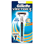 Gillette Vector-3 Razor has 3 self-adjusting blades, non-slip rubber grip and an easy to rinse and clean blades, giving an extremely close and fast shave compared to your current double edge blade. The twin blades on the razor shave twice in each stroke reducing repeated strokes for a faster shave. The pivoting head smoothly moves according to the contour of the face.