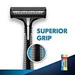 Gillette Guard is a single-blade system lined with a safety comb to prevent nicks & cuts. Superior Grip and Flexible pivoting razor head help better manoeuvre the curves of the face, neck & chin compared to double edge blade.