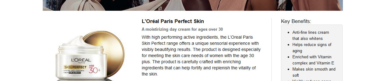 L’Oreal Paris Age 30+ Skin Perfect Range comprises of a moisturizing cream along with cleansing foam. Both contain pro collagen which is perfect for fighting those fine lines that begin to appear in your thirties, giving you younger, glowing skin.
