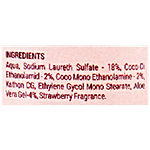 Aqua, SLES - 18%, Coco-Di Ethanolamid - 2%, Coco Mono Ethanolamine - 2%, Kathon CG, Ethylene Gycol Mono Stearate, Aloe Vera Gel-4%, Strawberry Fragrance.
