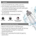This stainless steel bottle can be cleaned easily with a mild detergent and water. For best results, pre-condition the bottle with hot or cold water (according to your beverage). This flask can be used for your hot tea and coffee as well as cold water and juices. Take it to school, office or the park on a day out