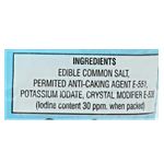 Edible Common Salt, Permitted Anti-caking Agent, Potassium Iodate, Crystal Modifier.
