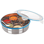 Stainless Steel With Lid and Silicone Seal container comes with a transparent lid which keeps the box airtight with help of 4-way locking system to maintain the freshness of your spices. There are 7 plastic bowls inside is ideal to store a different kind of spices.