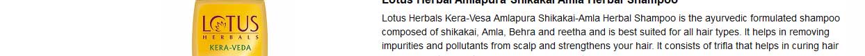 Lotus Herbals Kera-Vesa Amlapura Shikakai-Amla Herbal Shampoo is the ayurvedic formulated shampoo composed of Shikakai, Amla, Behra, and Reetha which is best suited for all hair types.