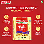 1. Boil 1 lt of Water2. Add 1 Tbspof Salt3. Add 1 cup (100gm) pasta and cook for8-10 min till the pasta is cooked and slightly firm.4. Strain the patsa in a strainer and rinse it with cold water5. Leave the Pasta in the Strainer for a few min for the water to drain completely6. Recommended : Add 1-2 Tsp of cooking oil/ Olive oil over the cooked Pasta to minimise it from sticking Together7. Toss gently8. 100 gm of uncooked pasta will make approximately 200gm of cooked pasta