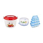 Nayasa Rice Cooker Red With Idli Maker Blue And Blue Microsafe Container, 3 pcs