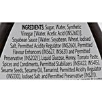 Sugar, Water, Synthetic Vinegar, Soyabean Extract, Liquid Glucose, Honey, Iodised Salt, Tomato Paste, Tamarind, Sesame Seeds, Spices & Condiments, Yeast Extract, Starch, Permitted Emulsifiers And Stabilizers And Permitted Acidity Regulator.