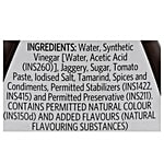 Water, Synthetic Vinegar, Jaggery, Sugar, Tomato Paste, Iodised Salt, Tamarind, Spices & Condiments, Starch And Permitted Stabilizers.