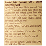 Sugar,Cocoa Butter,Milk,Chocolate,Soya Lecithin Emulsifier,Barley Malt Powder,Vanillin Artificial Flavoring,Vegetable Oil Coconut,Palm Kernel,Sugar,Chocolate,Cocoa Butter,Milk,Soya Lecithin Emulsifier,Barley Malt Powder,Vanillin