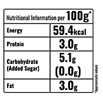 Nutrition_per: 100g Serving_Size: 1 kg Energy: 59.4kcal Protein: 3.0g Carbohydrate: 5.1g Added Sugar: 0.0g Fat: 3.0g
