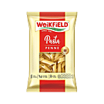 Weikfield Penne Pasta is made with Durum Wheat Semolina and contains no maida. It is a pure vegetarian product fortified with iron and micronutrients. It has zero trans-fat, zero cholesterol, is rich in protein and fibre, and makes for a healthy option for meals, snacks, and lunch boxes. It's shape and non-sticky texture make cooking it in any sauce an absolute delight as it holds the sauce perfectly, allowing you to savour its true flavours. Gives a delicious bite and mouth feel. Weikfield Pasta is also available in elbow, fusilli, shell & spaghetti varieties.