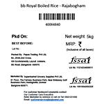 Manufactured by : Bangalore Venkata Sai Agro Industries Sy No 647/2, Chikalparvi Road, Manvi, Raichur- 584123, Karnataka Fssai Lic No11213324000324 | Kolkata ASSHIRVAD ENTRPRISE 16, PTR Siding, Coal Depot Shalimar, Howrah - 711102 Fssai Lic No12815008001814 | Chennai Sri Krishna Modern Rice Mill At Andharpalayam, Gengrampalayam (post), Puducherry, 605108 Fssai Lic No13515001000522 | Patna M/S ASG VISION B-295, MITRA MONDAL COLONY , SAKET VIHAR , PATNA - 800002 Fssai Lic No10416000000798 | Ahmedabad Parshva Foods , SR No -655/8/2, Opp Kumar Prithvi, Behind Shreeji Lawns, Bibwewadi, Pune-37 Fssai Lic No11517035000559 | Mumbai Shree Jayraj Food A-1, Punit Industrial premises Co-op soc Ltd, Thane Belapur road, turbhe, navi Mumbai- 400705 Fssai Lic No11515016000348 | Mumbai HRL Food Pvt Ltd, 2692, Gali pattey Wali, Naya Bazar, Central ( Delhi) 110006 Fssai Lic No10016011003279 | Pune PARSHVA FOODS , 655/8/2, Ganga Dham Road, Behind Shreeji lawns, Opp. Kumar Prithvi Bldg, Bibwewadi, Pune 411 037. Fssai Lic No11517035000559 | Delhi SHRI JAYRAJ FOODS PVT. LTD KHASRA NO-427/428, LAL DORA, LAND MARK-MOTHER'S PRIDE SCHOOL, VILLAGE ALIPUR, NEW DELHI-110036 Fssai Lic No13317005000307 | Vijayawada-Guntur Super market grocery supplies pvt ltd , Door No:4-88/2, part-b, Asst No:426/RAB Estates, Dhanekula Engineering college Road, Gangoor village, vijayawada (rular), krishna District, Andhrapradesh-521139 Fssai Lic No10117006000306 |