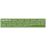 Water, Onions, Edible Vegetable Oil, Ginger, Garlic, Sugar, Salt, Dried Red Chilli, Celery, Acidity Regulator (INS 260), Potato Starch, Class II Preservative (INS 211).