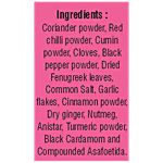 Coriander, Chilli, Cumin, Black, Dry ginger, Anistar,Tumeric,Common Salt, Methi