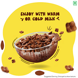 Experience the ultimate crunch with the deliciously chocolaty taste of Kellogg's Chocos Crunchy Bites. Enjoy them your way, with or without milk, for a delightful treat any time of the day. Naturally cholesterol-free, they are high in protein, a source of fibre and calcium, and rich in iron and B-group vitamins, making them a tasty and nutritious choice.