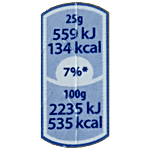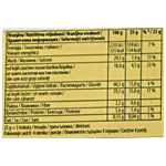 Nutrition per gram/ml: 100g Serving Size: 25g Energija / ????????? ???????? / Valoare energetica: 2235 kJ/ 535 kcal Masti / ??????? / Grasimi: 29,5 g od kojih zasicene masne kiseline/kisjeline / OT ????? ???????? ?????? ???????? / din care acizi gra?i satura?i: 18,0g Ugljikohidrati / ?????? ??????? / ???????????? / Glucide: 60,5g od kojih še?eri / OT ????? ?????? / din care zaharuri: 59,5 g Vlakna / ???????? / Fibre: 2,2g Bjelancevine / Proteini / ??????? / Proteine: 5,6g Sol / So / ??? / Sare: 0,15g