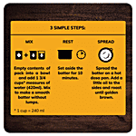 • 1.Empty contents of pack into a bowl and add 1 3/4 cups* measures of water (420ml). Mix to make a smooth batter without lumps. 2. Set aside the batter for 10 minutes. 3. Spread the batter on a hot dosa pan.