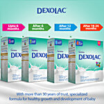 Dexolac Stage 1 Infant Formula is a powdered milk substitute for babies up to 6 months of age. It contains nutrients that support overall growth & development. Dexolac is scientifically formulated with 36 growth nutrients to support the baby's overall growth & development. It contains energy for increased needs during growth & protein that helps support growth. Calcium, Phosphorus, Magnesium and Vitamin D helps support the formation of strong bones. Iron-fortified to meet baby’s daily requirement. Whey proteins help support easy digestion. Dexolac contains optimal levels of key growth nutrients (Ca, Fe, Vit C, Vit D) to support the overall growth & development of Indian infants.
