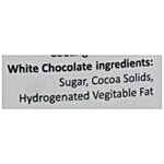 White Chocolate Sugar, Cocoa Solids, Hydrogenated Vegetable Fat & Eumlsifiers.