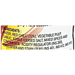 Water, Red Chilli (33%), Vegetable Pulp, Garlic, Salt, Spices & Condiments, Acidity Regulator (INS 26), Emulsifier & Stabilising Agent (E415)