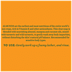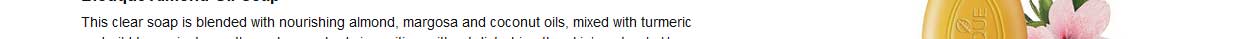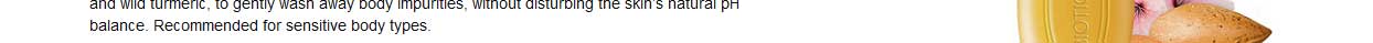 This clear soap is blended with nourishing almond, margosa and coconut oils, mixed with turmeric and wild turmeric, to gently wash away body impurities, without disturbing the skin's natural pH balance. Recommended for sensitive body types.