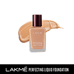 Sport a dazzling glow, wherever you go, with the Lakme Perfecting Liquid Foundation. An integral part of your face makeup, this liquid-based foundation spreads evenly to cover spots, blemishes, dark circles, and patchy skin tone. It is formulated to be water-resistant, smudge free and long lasting. The Vitamin E and silicones enrich the skin- rejuvenating, replenishing and nourishing it on the application. This foundation is available in a small bottle that's easy to carry.
