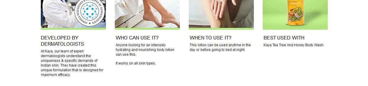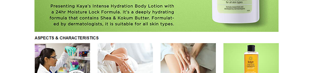 Extreme weather conditions and harsh cleansers strip your skin of its essential oils. Kayas intense moisture lock formula keeps your skin hydrated for 24 hours without re-application. Shea and Kokum butter replenish and restore essential oils to skin that is dry, leaving it feeling soft and smooth to touch. Its soothing fragrance will stimulate your senses all day long.