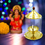 Shubhkart Udipi Diya - Daily Pooja Essentials, Balanced & Anti Heating Handle, Gold Colour, 80x40mm, 1 pc