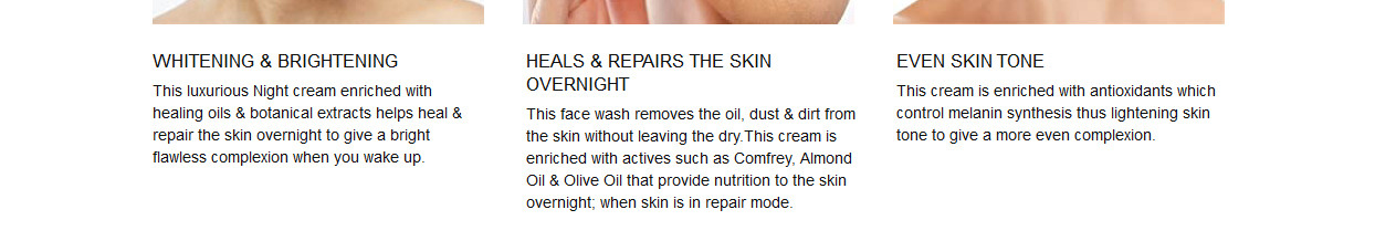 This product contains the unique hydrating yet non-greasy formula that reduces the appearance of dark spots and dullness for a healthy-looking natural fairness that glows from within. This product is rich in natural actives, which is ideal for night care application. It reduces the dark spots, rejuvenates the skin cells, and gives out that radiant complexion. Also, reduces the pigmentation and dark circles and results in giving out smooth, clear, fresh and glowing skin.