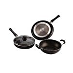 No Question askedNirlon Induction Base Non-Stick Cookware Gift Set - Black, Flat Tawa 28 cm + Fry Pan with Glass Lid 24 cm + Kadhai 24 cm, Aluminium