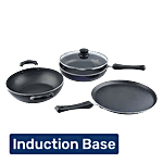 No Question askedNirlon Induction Base Non-Stick Cookware Gift Set - Black, Flat Tawa 28 cm + Fry Pan with Glass Lid 24 cm + Kadhai 24 cm, Aluminium