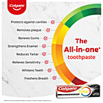Only 20% of the germs in your mouth are on your teeth, the rest 80% are on gums, tongue, and cheeks. Colgate Total Charcoal Deep Clean is an antibacterial toothpaste with dual Zinc arginine technology that actively seeks out bacteria and fights germs on teeth, tongue, cheeks, and gums, giving you Whole Mouth Clean for 12 hours. It is infused with micro-charcoal particles to provide a deep clean. Colgate Total provides more benefits than before - helping prevent cavities, plaque build-up, tartar formation, gingivitis, and sensitivity. It gives you fresh breath, protects your enamel, and removes stains, giving you a healthier, whiter smile. Recommended Usage: Put a pea-sized amount of our Colgate toothpaste on the head of the toothbrush. Insert the toothbrush into your mouth & use gentle, short strokes to brush your teeth. For a better experience, try with Colgate Slim Soft Charcoal Toothbrush. For optimal results, brush twice daily for 2 minutes. Colgate is India's Most Trusted oral care brand and is IDA certified. This toothpaste is 100% vegetarian and gluten-free and responsibly made. This toothpaste is made in India in our manufacturing unit that is awarded with True Zero Waste Platinum Certification.