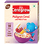 Nestlé Ceregrow Kids Cereal with goodness of multigrain like wheat, rice and oats, along with milk & fruits. Assuring a bowl of dense nutrition with 19 essential nutrients like Iron that helps support normal congnitive development, calcium & vitamin D for bone growth and protein for muscle growth.