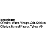 Gherkins, Water, Vinegar, Salt, Calcium Chloride, Natural Flavour, Yellow #5