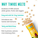 *Store in a cool, dry place away from direct sunlight and moisture1. Serve as a healthy snack for your baby anytime, anywhere. 2. Introduce your little one to new tastes and textures with Timios Melts.