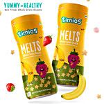 Timios Melts Banana & Strawberry healthy snacks are delicious whole grain snacks for hungry little tummies or busy tiny fingers. Introduce your kids to new tastes and textures with tasty Timios Melts. These are 100% natural, non-fried whole grain snacks and made with natural fruit & vegetable extracts, these are completely free from artificial colours, flavours or preservatives, and dissolve easily in your baby's mouth.